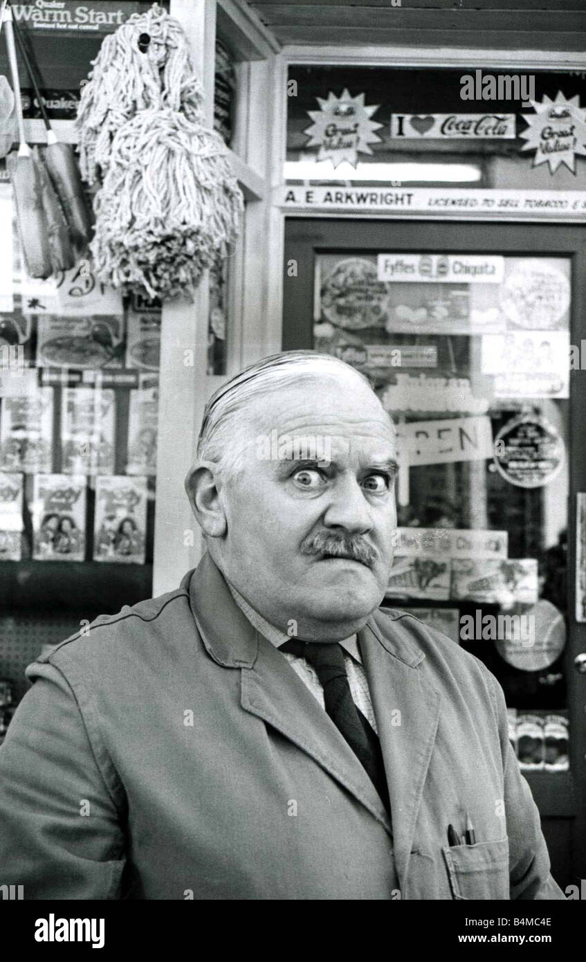 Ronnie Barker As The Stuttering Miserly Lustful Shopkeeper Arkwright From The Bbc Tv Series Open All Hours Pictured In Character Outside His Corner Shop October 1985 1980s Ronniebarker0904 Radiotimes Stock Photo Alamy